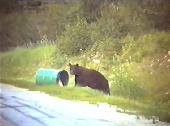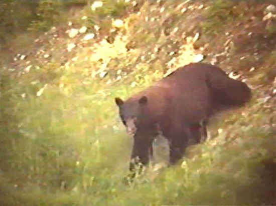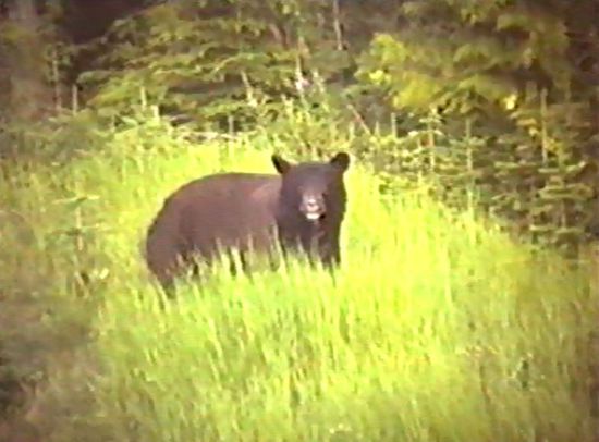 An der Straße nach Kaslo entdeckt Christel lauter Telefon-/Strommasten mit Krawatten!! Vermutlich waren für Wahlen mal Köpfe darüber? In Ains-worth Hot Springs: voll, in Kaslo: voll; wieder nach Süden, in Nelson: voll, in Salmo: voll. Über 100 km müssen wir wieder nach Süden bis nach Castlegar. Es dämmert schon und Ulrike bereit sich schon seelisch-moralisch auf eine Übernachtung im Auto vor; doch dann ein Aufschrei von Ulrike: ein Bär.