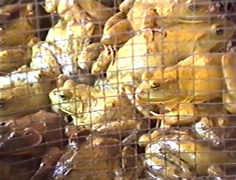 Neu für uns: lebende Frösche, lebende Crabs; wir dürfen auch Rambutans probieren - an verholzten Trieben stehende harte Kugeln mit saftigem weißen Fruchtfleisch und dickem Kern.