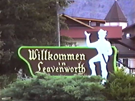 Durch wüstenähnliches Hügelgebiet mit im Tal liegenden Oasen von Obstbäumen geht es am Columbia River entlang, bis wir wieder nach Westen abbiegen müssen. Dort liegt dann Leavenworth - ein durch und durch bayrisches Dorf, in dem wir - o graus - im Hotel Edelweiß gegen 19.30 Uhr Wiener Schnitzel bzw. Kassler mit Sauerkraut bestellen. Zum Essen gibt es ein Potpourri von deutschen Volks- und Karnevalsliedern; eigentlich wollten wir ja auf Empfehlung ins 'Katzen-jammer' (amerik. ausgesprochen!!) gegangen sein, aber das wurde restauriert.