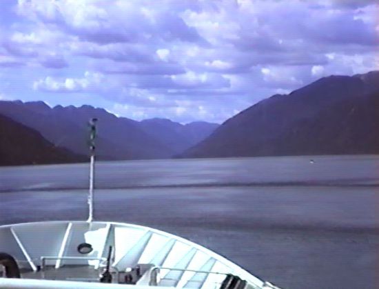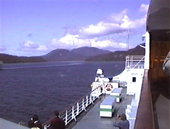 Kurz nach 15.00 Uhr beginnt dann die eigentliche Inside-Passage durch ein enges Tal - Schiffahrt durch die Berge. Nun warten wir auf die Zeit fürs Abendbuffet - 17.30 Uhr ist es soweit, und da wir die ersten sind, bekommen wir auch einen Fensterplatz. Das Buffet besteht aus Salad Bar, Roastbeef, geräuchtem Lachs, vielen Gemüsen und Früchten sowie Nachtisch aus Erdbeermousse, Schokoladenmousse und 'kaltem Hund'. Wir halten es bis fast 19.30 Uhr aus und finden zu guter Letzt wieder unseren Stammplatz.