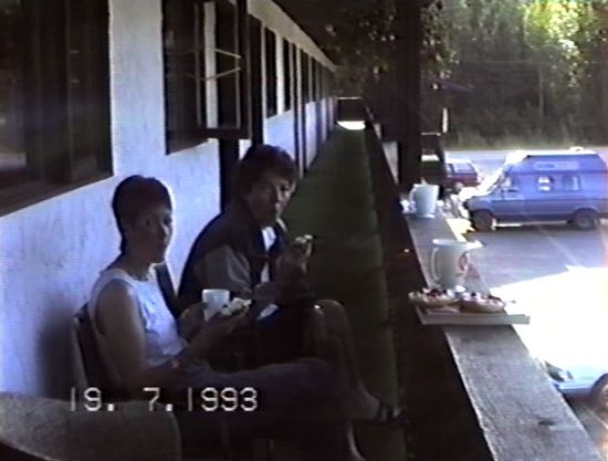 Auf der Rückfahrt wird eine umfangreiche Besorgungsliste aufgestellt: Sand, US-Briefmarken, Postkarten, geräucherter Lachs, Tanken, Butter, Brot. Auf der dreistündigen Rückfahrt gibt es an der Junction von heute morgen nochmals Kaffee. Das Totem-Café erreichen wir gerade noch zur Abendessenszeit: 2x Lachs, für mich diesmal Prawns in Garlic black bean sauce. Auf unserer Terrasse trinken wir noch einen Wein, und dann fallen wir alle in die Betten.