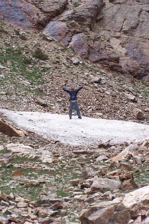 ausgestattet mit dieser erlaubnis mache ich mich auf den weg. es gibt auch keine probleme bei den kontrollen, aber der soldat in sumdho will es ganz genau wissen. abgesehen von der polizeikontrolle nahe delhi ist das das einzige mal, das sich jemand dafuer interessiert meinen fuehrerschein zu sehen. das ist aber noch nicht alles. er kontrolliert die zulassung, die gestellnummer, will den besitzer wissen und vieles mehr. das alles geht natuerlich in der ueblichen geschwindigkeit des indischen subkontinents von statten. na ja, was solls, ich bin jung, ich kann warten. abschliessend biete ich ihm noch das geburtsdatum meines goldhamsters und die schuhgroesse meines bruders an, aber erstaunlicherweise will er das nicht notieren. ja, ja, raetselhaftes indien.