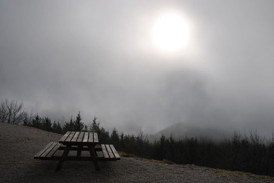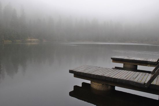 Vor lauter Nebel fahre ich fast am Mummelsee vorbei, lege eine Art Notbremsung ein und parke.