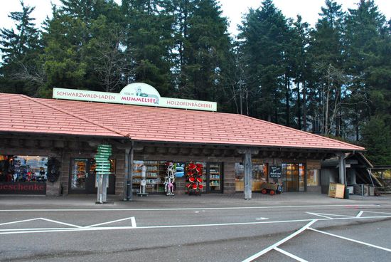 Hier am Mummelsee sieht es baulich nach ganz schön viel Tourismus aus. Ein großes Hotel, ein riesiger Souvenir-Shop, Kinderspielplatz u. a.