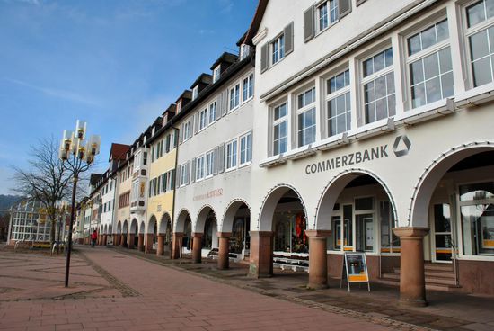 Ein recht beschauliches und sehr sauber wirkendes Städtchen. Um den großen Marktplatz herum befinden sich Arkaden mit netten kleinen Geschäften.