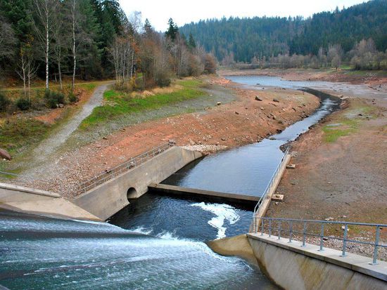 Es gibt eine Vorsperre mit 800 m Länge, die Hauptsperre ist 2050 m lang und wurde von 1965 - 1970 erbaut.