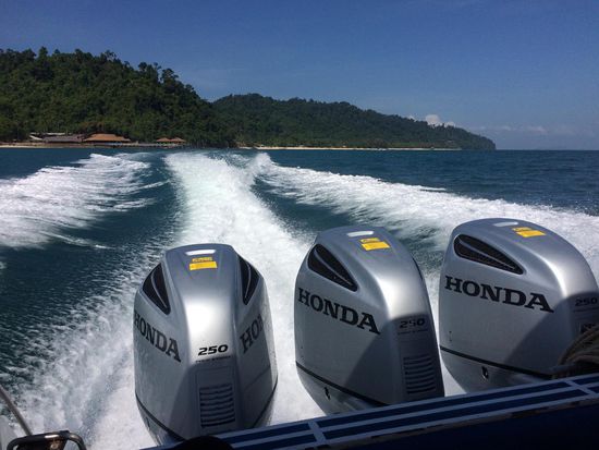 Die gesamte Reise bis nach Koh Lipe dauert 3 Stunden. Wir halten unterwegs noch bei Koh Muk, dann geht's vis a vis nach Koh Kradan, dann einiges weiter nach Koh Bulon bis wir dann nochmals eine Stunde weiter endlich an unserem Ziel ankommen.