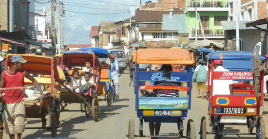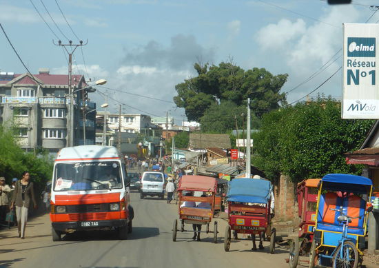 Durch das Gewusel aus Rikschas, Pousse-Pousse und Taxi-Brousse geht es zunächst aus der Stadt hinaus.