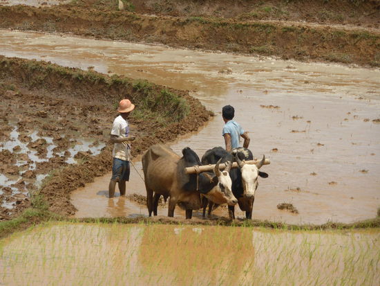 Die Panoramaszenen mit Reisfeldern häufen sich. Die Arbeit der Reisbauern ist hart und die Zebus scheinen nicht so richtig zu wollen.