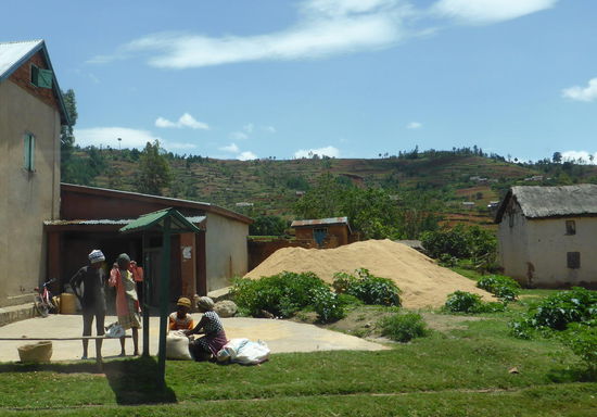 Der Abzweig nach Samhambavy - 21°25'50.15"S / 47° 9'6.95"E liegt nördlich von Fianarantsoa, es ist eine Sand-Schotter-Piste an deren 'Straßen'rand sich die Ziegelbrennstapel häufen.