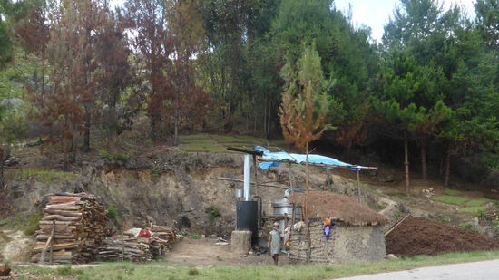 (Découverte du procédé authentique de cuite de géranium permettant de recueillir l'essence d'huiles essentielles : géranium bien entendu mais également vétiver et cryptoméria à travers un alambic traditionnel, accompagné d'Isabelle et de Jean-Jacques. Des dégustations de sirop, miel, thé et bien sûr du rhum au géranium ponctuent la visite.)