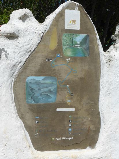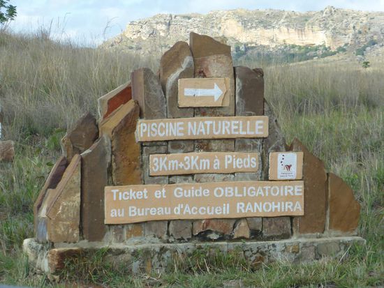 Am Abzweig zum piscine naturelle steht angeschlagen, dass der Fußweg 6km ist. Obwohl der Fluß 'Hochwasser' hat, können wir über eine kleine Steinfurt per pedes 'übersetzen'.