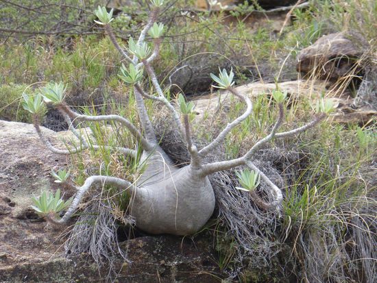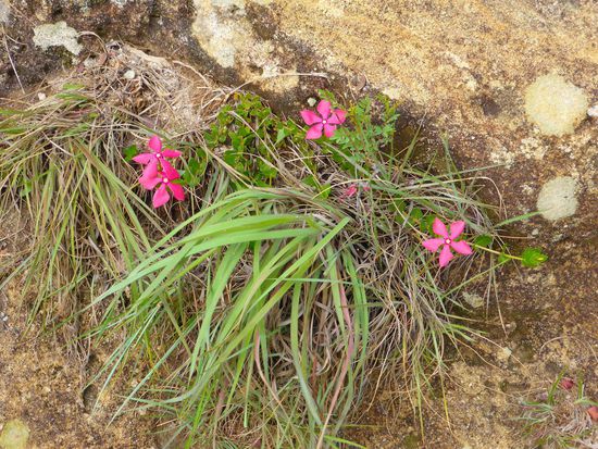 Grasnelken, Felsauswaschungen, Steinhügelgräber und sogar ein Metallsarg zeugen von menschlichem Leben im Isalogebirge.