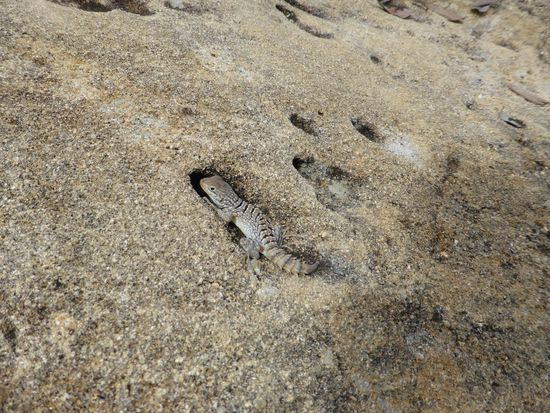 Vorbei an einem Kindergrab geht es weiter zu einem point of view mit und tollem Rundum-Panorama. Ich bin gerade noch rechtzeitig um einen Minisalamander aus einer kleinen Felsspalte kriechen zu sehen.