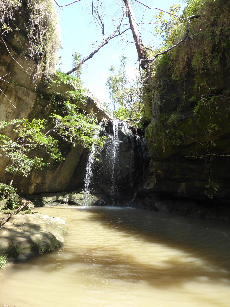 Über Stock und Stein und auf und ab geht es bis zu einem Wasserfall.
