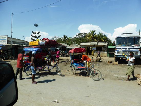 Die Hafenstadt Tuléar ist neben Fort Dauphin die wichtigste Stadt im Süden und bedeutendes Handelszentrum. Sie wurde von französischen Architekten geplant und soll auch große Villen entlang breiter Alleen haben. Wir haben diese nicht gesehen, da die Stadt nicht zum Baden geeignet ist - bei Ebbe öffnet sich eine breite Sumpffläche am Strand aus - und wir deswegen nur hindurchfahren. Ansonsten macht die Stadt einen ungepflegten Eindruck - wie schon vorher geschildert, die meisten Behausungen am Rande der Stadt sind ärmlicher als im Norden des Landes und der am Straßenrand und zwischen den Bahausungen liegendeUnrat nimmt ebenfalls immer mehr zu.