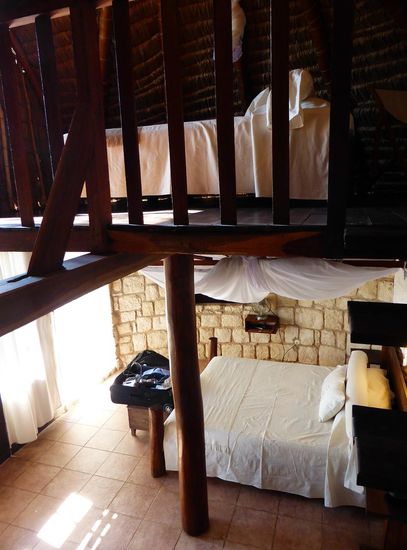 Gegen 16.30 Uhr erreichen wir das das Hotel Le Paradisier, - es liegt direkt am Meer, alles ist offen - auch die in einem Pinienhain gelegenen zweistöckigen Bungalows, gezimmert aus dicken Holzstämmen und Dächern mit dicken Bastgeflecht. Die Treppe zum oberen Stockwerk würde zwar deutschen Bauvorschriften absolut nicht genügen - Ulrike will aus diesem Grund nicht oben schlafen, obwohl das laue Lüftchen im oberen Stock besser durchweht.