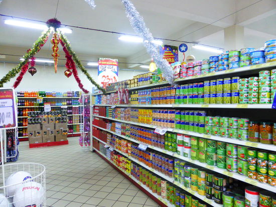 Der Rundgang durch den Supermarkt - alle anderen Läden sind wegen Sonntag geschlossen - gibt einen Überblick über das Warensortiment, das erstaunlich groß ist.