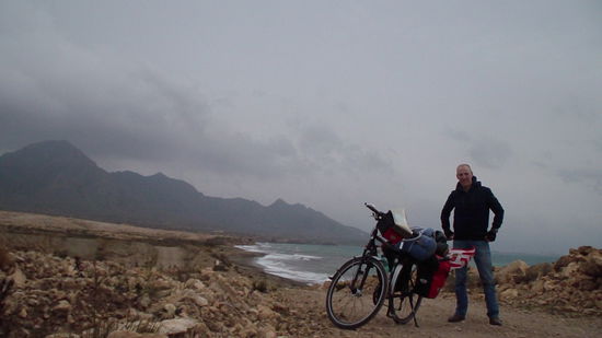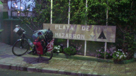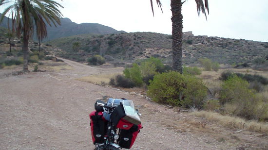 Ich war etwas ratlos und zog in Betracht mir in Aquilas ein Zimmer zu nehmen. Es nervte mich aber, dass ich erst 50 km gefahren war und schwang mich deshalb wieder aufs Rad. Ich wusste, dass es in Plomares einen Campingplatz gab. Wäre das Wetter nicht so miserabel gewesen wäre die Strecke bis nach Palomares recht schön gewesen. Aber ich fuhr durch starken Dauerregen, so dass meine Stimmung recht schlecht war.