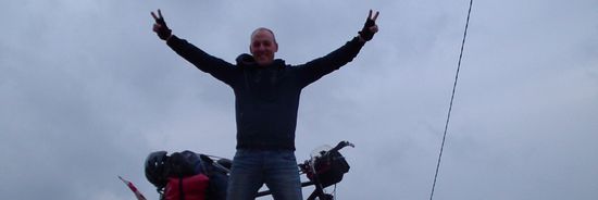 Es ging eine lange Zeit nach oben. Lange Zeit war Schieben angesagt. Es war eine Straße, welche seitlich in die Berge eingebaut wurde und kurvig nach oben führte. Kurz bevor ich oben war traf ich auf ein deutsches Wohnmobil. Sie machten am Straßenrand Pause und fragten mich ob Sie mir eine Flasche Wasser geben sollten. Ich nahm Sie gerne an nachdem wir eine Weile gequatscht hatten.