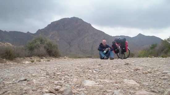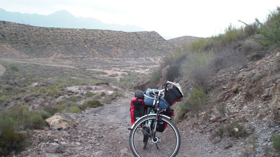 Dazu kam noch mein vollbeladenes Rad. Ich fluchte. Aber irgendwann war ich oben. Trotzdem, dass ging mir so langsam total auf die Nerven und so beschloss ich ab Calnegre von der Küste ins Landesinnere zu fahren um auf die D 20 Richtung Aquilas zu flüchten um endlich mal ein paar Kilometer zu schaffen. Nachdem ich mich kurz ein wenig verfahren hatte und durch die Plastiklandschaft aus riesigen Gewächshäusern fuhr kam ich dann zur D20, welche mit sogleich mit einer heftigen und langen Steigung begrüßte.
