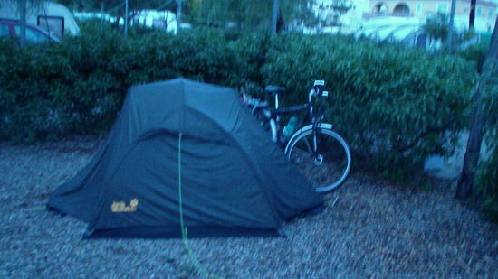 Es schüttete aus Eimern. Selbst als ich mein Zelt aufbaute hatte das Wetter kein Erbarmen. Ich baute es im überdachten Bereich des Waschhauses auf und stellte es dann nach draußen, drückte noch rasch die Heringe in den Boden und schmiss meine Sachen ins Zelt.