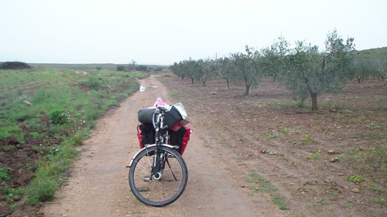 Mit einem Stock und Wasser aus den Pfützen schaffte ich den Lehm zwischen Reifen und Schutzblech rauzudrücken. Aber der Wege war nicht mehr befahrbar. Ich schob mein Rad und fand einen Pfad der mich zur N341 führte. Zum Glück!! Es fing außerdem wieder stark an zu regnen.