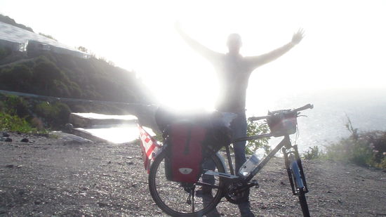 Die ersten Kilometer waren sehr schön und gingen auf der wenig befahrenen N 340a bergig direkt am Wasser entlang. Das Wetter war endlich trocken und die Sonne war da. Super!