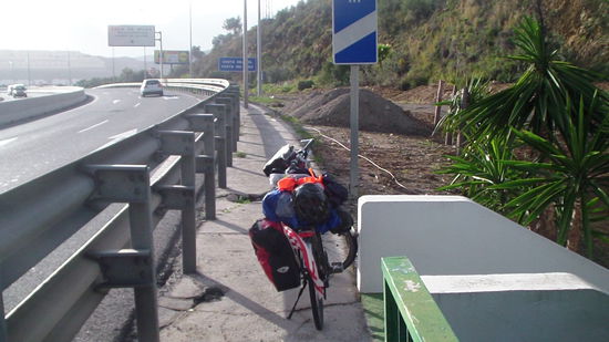 Nachdem ich durch Torremolinos durch war und da ein Eis gegessen hatte fing ab Fuengirola eine miese Strecke an. Ich musste mich auf einem Betonstreifen neben der Schnellstraße durchkämpfen.