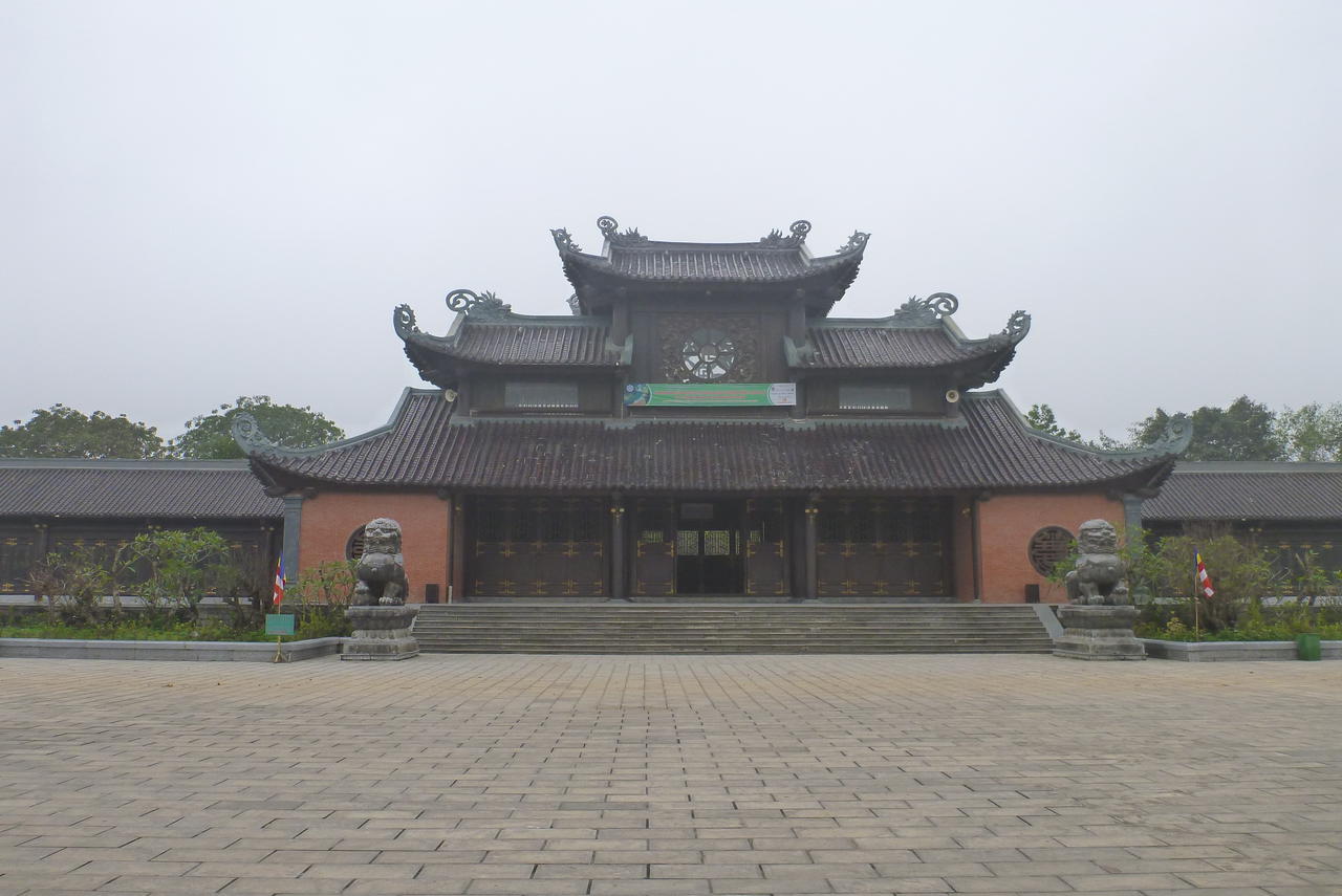 Ninh Binh, nun ja, das habe ich mir anders vorgestellt. Kalt, Nebel und tote Straßen. Das die Straßen leer waren lag vermutlich an dem bevorstehenden Tet Fest, da dort jeder Vietnamese nach Hause fährt und ein Großteil der Geschäfte für 10 Tage schließt. Es gab einfach nichts zu sehen. Zufällig befand sich der Amerikaner, den ich bereits aus HCMC und Da Lat kannte auch hier und bei einem Treffen empfahl er mir in die trockene Halong Bucht zu fahren. Also habe ich mir am nächsten Morgen eine lange Hose gekauft (es war echt frisch ) und einen Roller geschnappt. Das hat sich dann auch echt gelohnt. Zwischen Karstfelsen schlängelt sich die Straße und mit abnehmenden Nebel zeigte sich die schöne Natur. Einen Felsen konnte man auch besteigen, so dass man das ganze noch von oben beobachten konnte. Auf dem Weg befand sich noch eine Pagoda, die sich über eine großen Fläche erstreckt und einen ziemlich neuen Eindruck machte. Aber obwohl die Anlage sehr schön war, war ich die Attraktion. Da ich der einzige Westler war, wollte jede Gruppe Asiaten ein Foto mit mir vermutlich hänge ich jetzt in zig Wohnzimmern als Ausflugserinnerung an der Wand