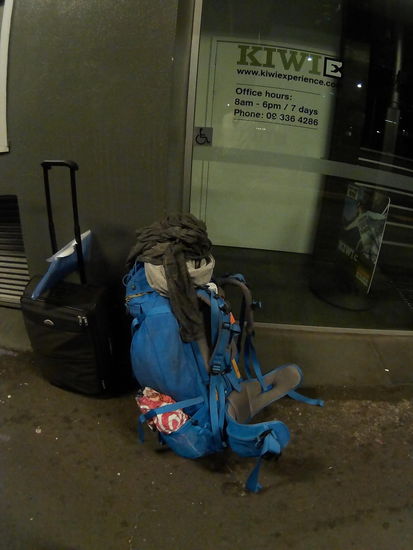 Zwei Typen stehen jetzt vor der Rezeption. Ich winke hektisch und einer stellt sich in die Lichtschranke und ich kann das Hostel betreten. Ich warte, bis sie ausgecheckt sind. Frage den Typ an der Rezeption, ob er mich nicht klingeln gehört hat? Oh no, die ist kaputt, Du musst klopfen. Ja, klasse. Ob ich im Kiwi Büro anrufen kann? Oben die Straße ist gesperrt und ich weiß nicht, wo der Pickup nun ist. Der Typ starrt nur. Aber die beiden Jungs hinter mir, sagen, dass der Pickup vorm Kiwi Office ist. Sie sind im selben Bus und wollen auch gleich los. Umständlich erklärt der Rezeptionist, wo genau das Office ist. Ich bekomme nicht soviel mit und setze auf die beiden Jungs, denen ich mich anschließe.