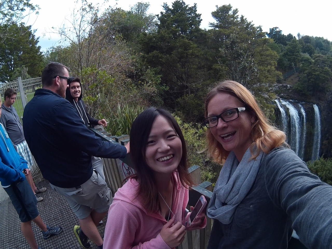 Dann stoppen wir an einem Wasserfall für ein paar Fotos. So langsam werde ich müde, die letzten Tage machen sich dann doch bemerkbar. Wir erreichen Paihia und halten als erstes an der Werft. Ich hole mein Ticket für die Delphin Tour, die schon in einer Stunde losgeht und gehe schnell zum Geldautomaten. Alle zurück in den Bus und ab zum Hostel.
