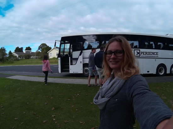 Die Busfahrerin macht Anwesenheitskontrolle. Bei mir stutzt sie, Du hast uns Deinen Pickup Point nicht gesagt, das musst Du immer machen. Ja, ich bin auch nicht happy damit, wie das gelaufen ist. Als ich mit dem Office die Daten bestätigt habe, hätten die mich ja vielleicht mal informieren können. Bestätige ab jetzt einfach immer die Pickup Points. Hm, ich bin grad kein zufriedener Kunde von Kiwi Experience, das geht ja gut los.