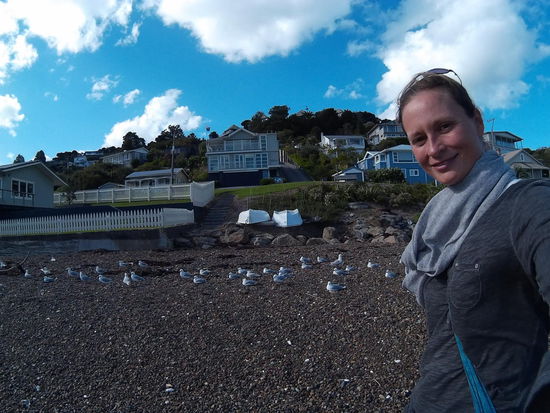 Ich laufe weiter und sehe einen komischen kleinen braungefiederten Vogel hastig über die Straße laufen. Hm, war das eventuell ein Kiwi? Ja, da sind überall Schilder, die einen fettnäsigen Vogel ohne Flügel zeigen, mit dem Hinweis Kiwihabitat und der Warnung, keine Hunde herumlaufen zu lassen. Sweet, das war echt ein Kiwi und ich bin erst 2 Tage hier. Vielleicht kann ich auch ein Foto von einem machen?