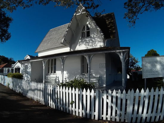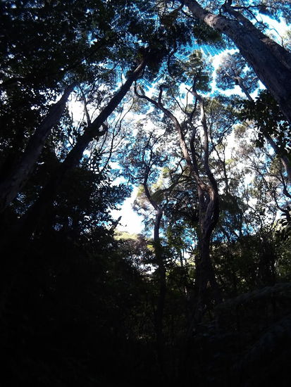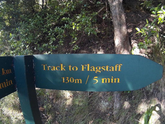 Ich mache den walk zum flagstaff hill, den ich gerade so schaffen sollte. Falls ich noch Zeit habe, kann ich auch auf dieser Seite runter zum Strand, der Kapitän zumindest hat das empfohlen. Erstmal geht's bergauf eine Straße hoch und dann ein bisschen durch den Wald. Ein erster schöner Blick zurück auf das Städtchen am Pier eröffnet sich. Dann ist der Pfad durch den Wald zuende und ich stehe wieder auf einer Straße mitten im Wohngebiet. Bin ich hier wirklich richtig?