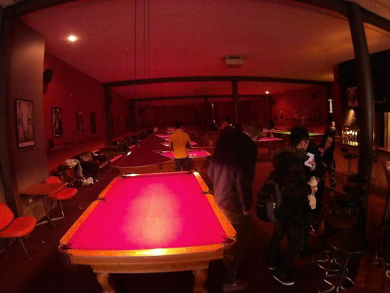 Nachdem wir alle deutlich nasser als vorher wieder im Bus angekommen sind, geht es zum Hostel, das in der Innenstadt liegt. Ich staune nicht schlecht, daß wir an immerhin zwei Kathedralen vorbeikommen und das alte Bahnhofsgebäude ist auch sehenswert, die würde ich mir alle gerne mal anschauen. Zur Bibliothek wollte ich aber auch, endlich mal wieder unbegrenzt online und es geht jetzt schon auf 5.00 zu. Erstmal gibt's eine Überraschung beim Betreten des Hostels, es sieht eher wie eine Billiardhalle aus. Weil es eine ist, das Hostel ist obendrauf. Oh, ok. Janika und ich kommen zusammen mit einem der zwei englischen Pärchen und dem Mädel, das immer bei ihnen hängt in ein 6-Bett-Zimmer. Müssen dann aber doch nochmal fragen, wo denn nun genau die Zimmer sind. Hinter der Rezeption durch die Tür und die Treppe hoch. Es ist ein schönes Zimmer, mit stabil aussehenden Betten. Da wir die Letzten sind, müssen wir die zwei übriggebliebenen Topbetten nehmen, die ziemlich hoch sind. Statt einer Leiter gibt es sowas wie einen Tritt, ein Bügel aus Plastik, auf den man den Fuß setzen kann. Na hoffentlich muss ich heute Nacht nicht aufstehen.