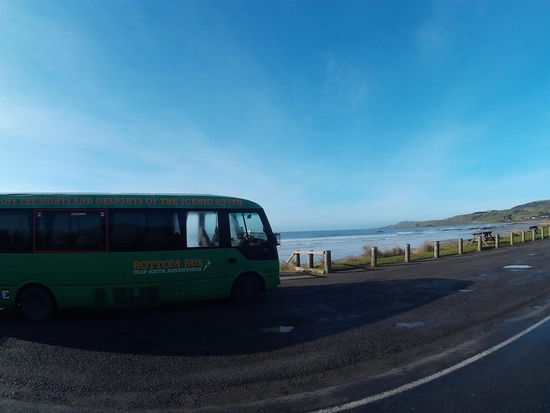 Heute hat der Bus einen kleinen Gepäckwagen hinter sich. Vermutlich weil wir ein paar Leute mehr als gestern sind. Das Wetter sah heute morgen ganz gut aus, aber auf unserer Fahrt in die Catlins fängt es zu regnen an. Schade, denn wir haben heute ein paar Walks auf der Liste und bekommen hoffentlich etwas Sealife, zB seals und penguins zu sehen.