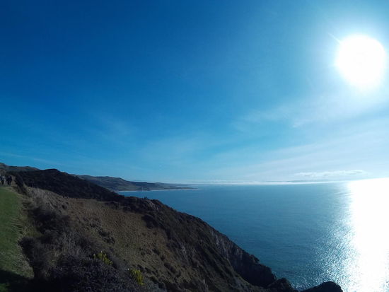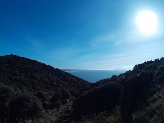 Sie haben immer einen Baseball dabei, warum nur? Als ich sie überhole, täuscht der eine einen Pass an und ich nehme reflexartig den Ball. Alle rufen irgendwelche Anweisungen, aber ich habe nun wirklich keine Ahnung von Football und werfe ihnen das Ding einfach rückwärts zu. Das ist bei meinen Wurfkünsten mit dem Meer weit unter uns auf einer Seite schon Risiko genug.