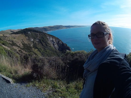 Wir stoppen wieder an einem Lookout am Meer. Diesmal bietet mir ein anderer aus der Vierergruppe die Süßigkeiten an. Hier kann man hector dolphins, die kleinsten Delphine der Welt sehen, wenn man Glück hat. Leider haben wir keins. Mit Delphinen tue ich mich ja irgendwie immer schwer.