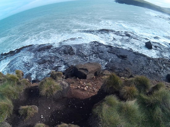 Dafür sehen wir gleich auf der anderen Seite der Bucht Yellow White Penguins, die seltensten Pinguine der Welt. Hier leben 18 Paare und gleich als wir kommen, sehen wir einen auf der anderen Seite der Klippen. Während einige noch versuchen näher an ihn heranzukommen, erspäht jemand zwei weitere direkt an den Pfeilern der Treppenkonstruktion. Für ein Foto sitzen sie zu versteckt, aber wir haben sie gesehen.