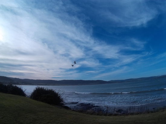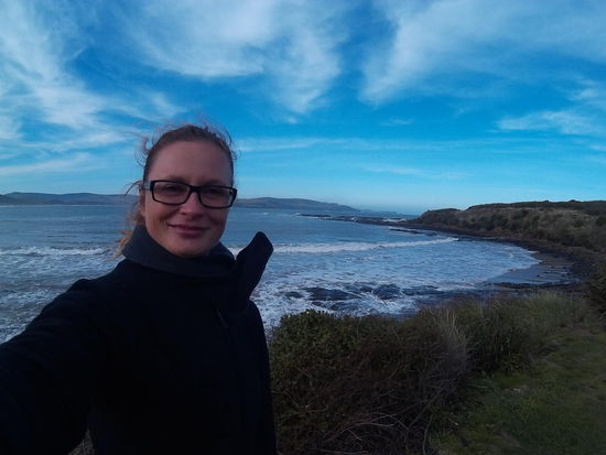Von unserem Morning Tea Stop am Meer aus kann man den Leuchtturm, zu dem wir gleich laufen, fast sehen. In dem urigen Gasthaus gibt's einen Kamin, juchuu. Tee und Kaffee nimmt man sich in Selbstbedienung und zahlt 2,50€ in die Box. Ich stehe vor dem Kamin und unterhalte mich etwas mit Reese, der versucht, mit allen mal ins Gespräch zu kommen, was ich gut finde.