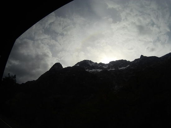Wir haben mittlerweile die Snowline, also Schneegrenze erreicht, sprich jetzt liegt etwas Schnee auf unserer Höhe.