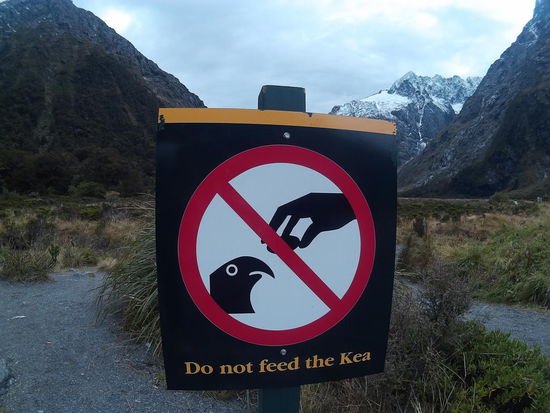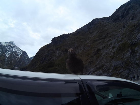 Derweil ist unser Fahrer bei weniger blutrünstigen Themen angekommen. Hier im Naturpark gibt es den Kea, einen ziemlich lustigen Vogel, der gerne Essen von den Besuchern des Parks stiehlt. Er kann z.B. problemlos Lunchboxen öffnen. Auch im Auto sind Sachen nicht sicher, selbst wenn alles verschlossen ist, versucht der Kea das Isoliergummi zu lösen. Neuerdings surft er auf den Dächern von Autos. Je schneller das Auto fährt, desto flacher macht er sich, wird es ihm zu schnell, breitet er seine Schwingen aus und wird vom Dach gefegt. Da er dabei nicht darauf achtet, was hinter ihm ist, wird er oft überfahren.