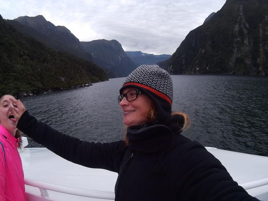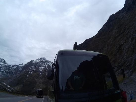 "You are not safe", inspiriert mich dazu, Amanda, die ihn auch creapy findet, Busfahrer storys zu erzählen. Z.B. dass er gar nicht der Fahrer ist, der liegt gefesselt und geknebelt unten beim Gepäck. Du fährst mit mir im Bus? "you are not safe". Dass er uns in die Mitte des Milford Sound bringt, uns ausraubt und uns nackt aussetzt. Lustige Vorstellung übrigens, wie der Kiwi Bus nackt durch den Milford Sound marodiert und Autofahrer hijackt. Amanda teilt mir mit, dass sie jetzt auch Angst vor mir bekommt.