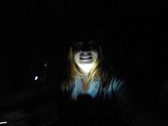 Der Tunnel ist meiner Meinung nach auch nicht viel länger als der Elbtunnel, aber was solls. Ich halte mir die Taschenlampe unters Gesicht und erzähle weiter Gruselgeschichten darüber, wie wir alle nackt und zu Fuß durch diesen Tunnel zurück laufen müssen.