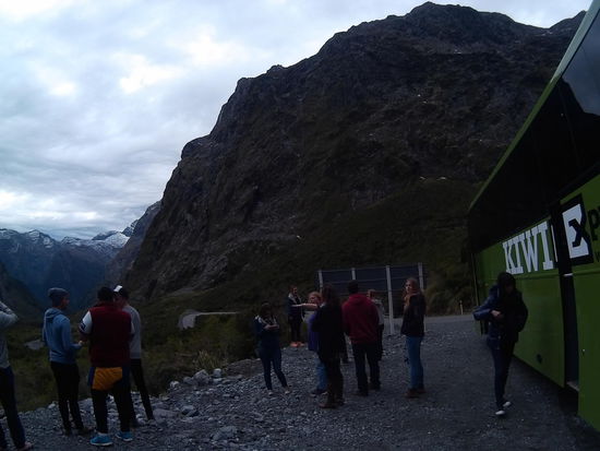 Gleich sind wir am längsten Tunnel der Welt (ehrlich?). Der Fahrer erzählt von der aufwändigen Konstruktion und das alles nur, um die Schönheit des Milford Sound für Besucher zu erschließen.