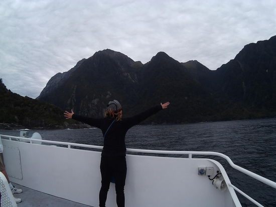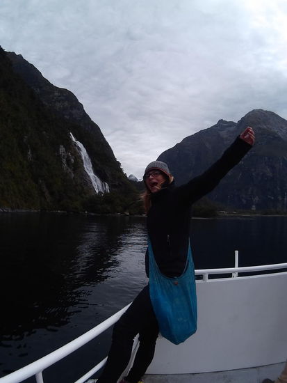 In zwei Stunden sehe ich Amanda. Reese rät uns, lieber jetzt noch zu schlafen, um nachher fit zu sein. Die Fahrt durch den Milford Sound ist sehenswert. Ich versuche zu schlafen, aber jetzt kann ich natürlich nicht, typisch. Ich versuche es eine Stunde lang erfolglos und gebe dann auf.
