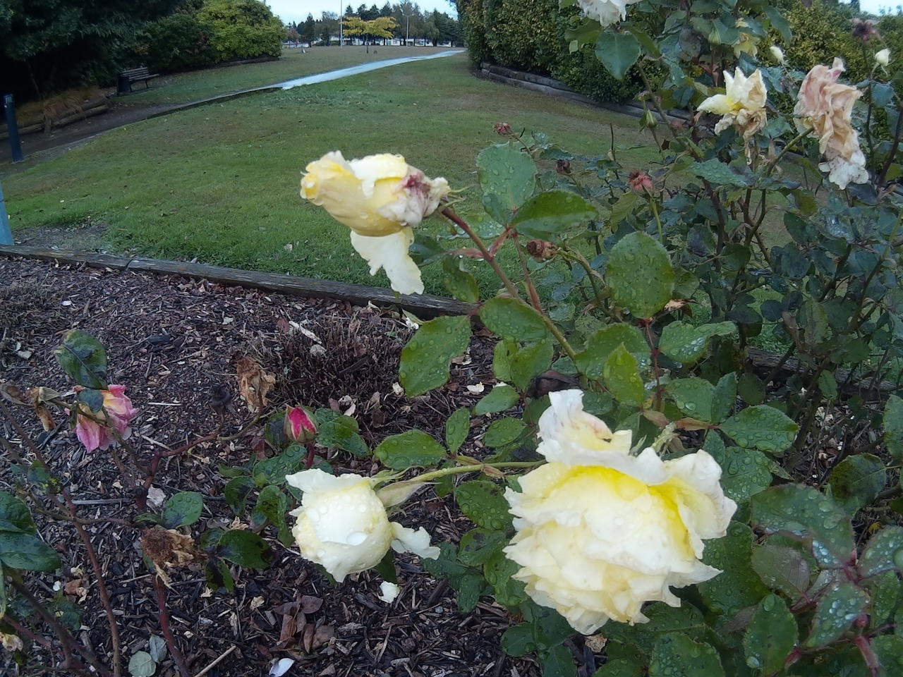 Ich will aber wenigstens mal raus. Also ziehe ich mich an und gehe in den kleinen Park. Dort gibt es vor allem noch viele Rosen. Rosen erinnern mich immer an meine Großmutter, die sie geliebt hat.
