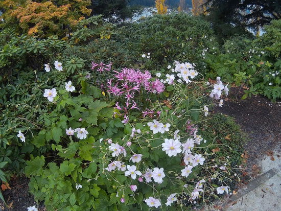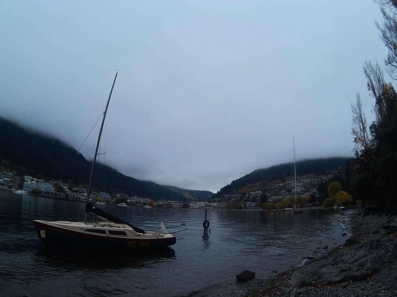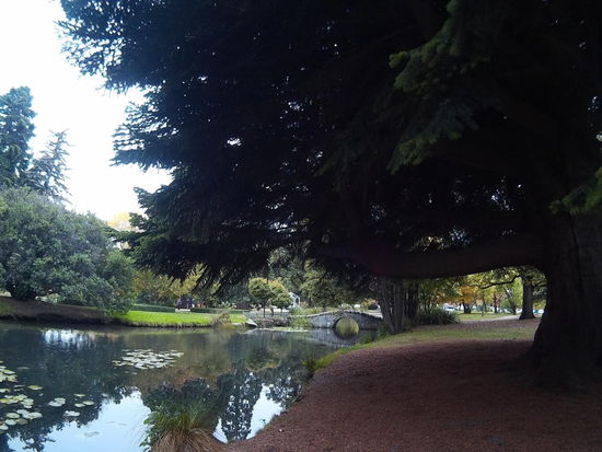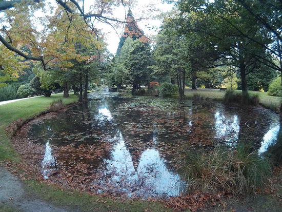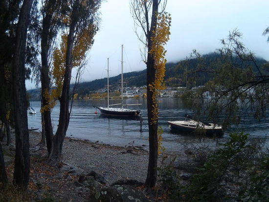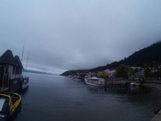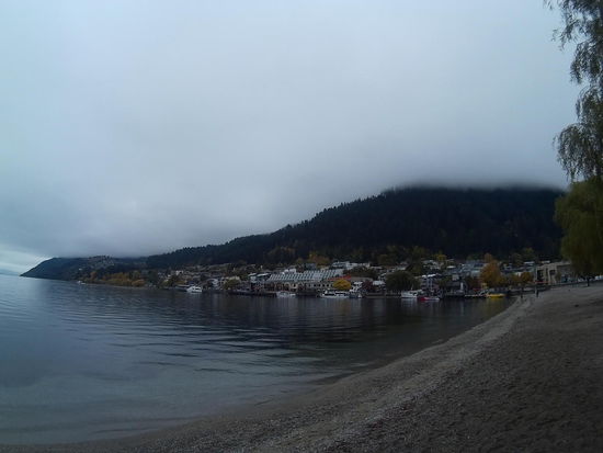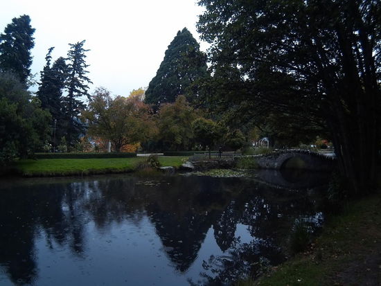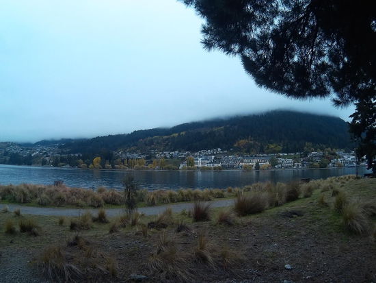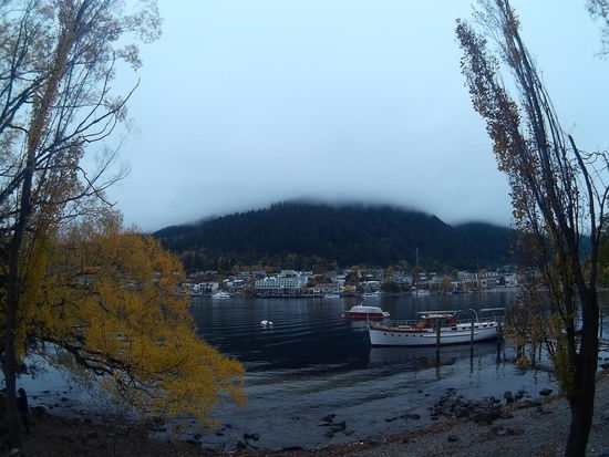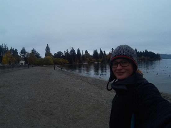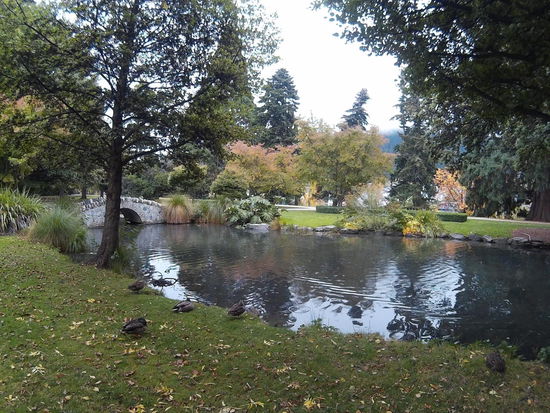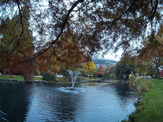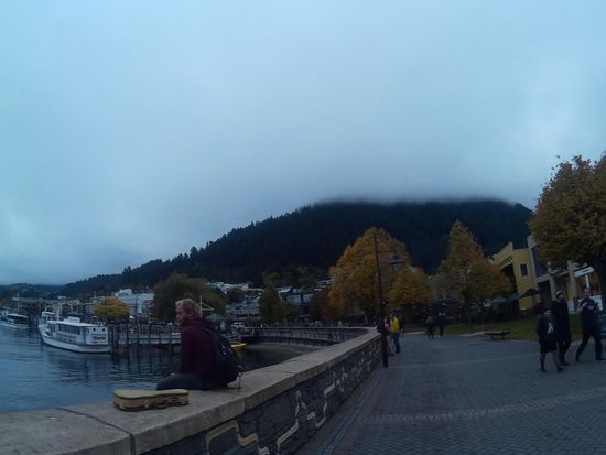 Ich schlendere ein bisschen im botanical garden herum. Die Stadt am See mit den, wenn auch wolkenverhangenen, Bergen in ihrem Herbstkleid im Hintergrund hat schon was. Dennoch sieht man selbst von hier, dass alles, im wahrsten Sinne des Wortes, nur Fassade ist. Die Häuser haben Reihe um Reihe zuckersüße Fassaden. Teilweise sehen ganze Straßen ähnlich aus, Hotel - und Apartmentkomplexe. Trotzdem schön und der botanische Garten mit seinem FrisbeeMiniGolf gefällt mir auch.