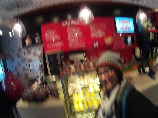 Ich schreibe Jonas ein paar Worte auf die Karte, da wird er sich hoffentlich freuen. Ich warte, bis die Angestellte, die im hinteren Bereich telefoniert, wieder nach vorne kommt und beiße schonmal in meinen Cookie. Sie kommt extra für mich, das Handy noch am Ohr, und nimmt meine Karte. Dann geht sie weiter telefonieren. Sehr zum Verdruss der Kundin neben mir, die eine Tüte Cookies kaufen will.